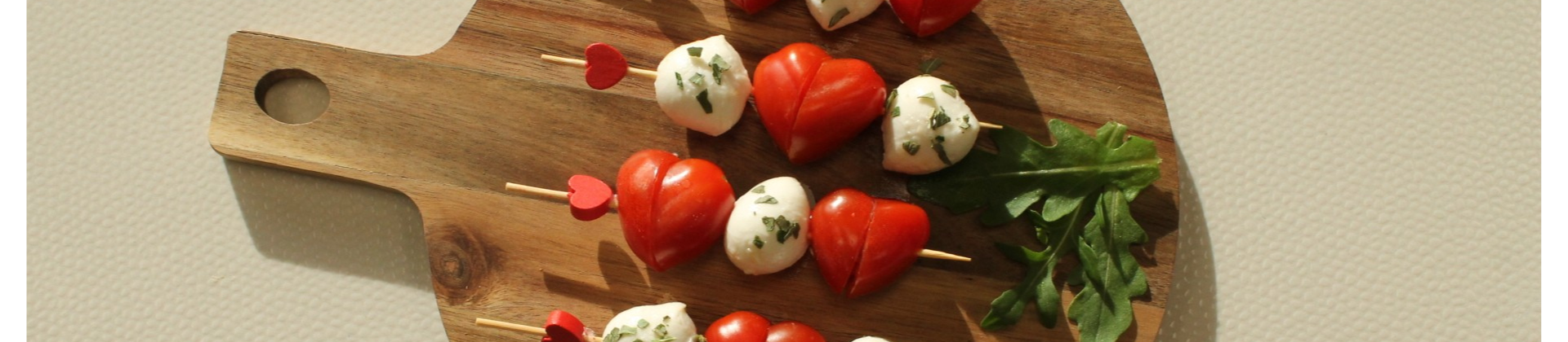 Brochettes tomates cerises et mozzarella en coeur